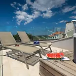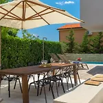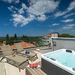 Questa villa fronte mare con 5 camere da letto dà accesso anche a luoghi di interesse naturale come l'Aquapark Aquacolors Poreč, situato a circa 25 minuti a piedi. La casa vacanze è a una distanza di 4,1 km dalla Laguna Blu.